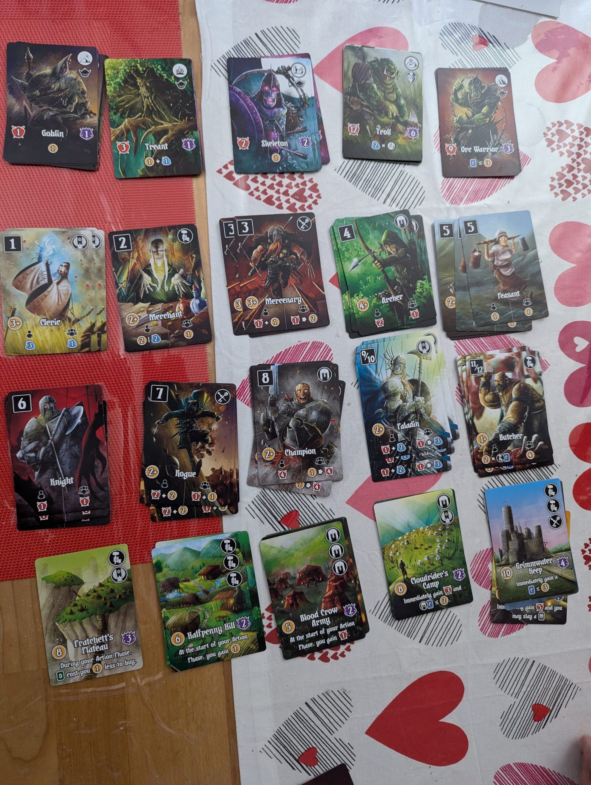 Finally there are the big nasties that hover above the game like threatening treacle. Each of them requires power to eliminate and provides points and prizes for doing so. They represent different terrains (swamps, mountains, forests, etc) and as you go through each pile the monsters get harder and eventually culminate in a challenging boss fight that grants big rewards particularly if you were the player to eliminate its minions.