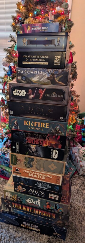 In 2026 I hope to build off the trend but what I really want is to add more friends to my gaming roster. With the new friendly local game store, I might very well get that opportunity. For now, I’m very grateful to all of you who went on this journey with me. Let me know what games you’re playing or hope to play in the coming year.
