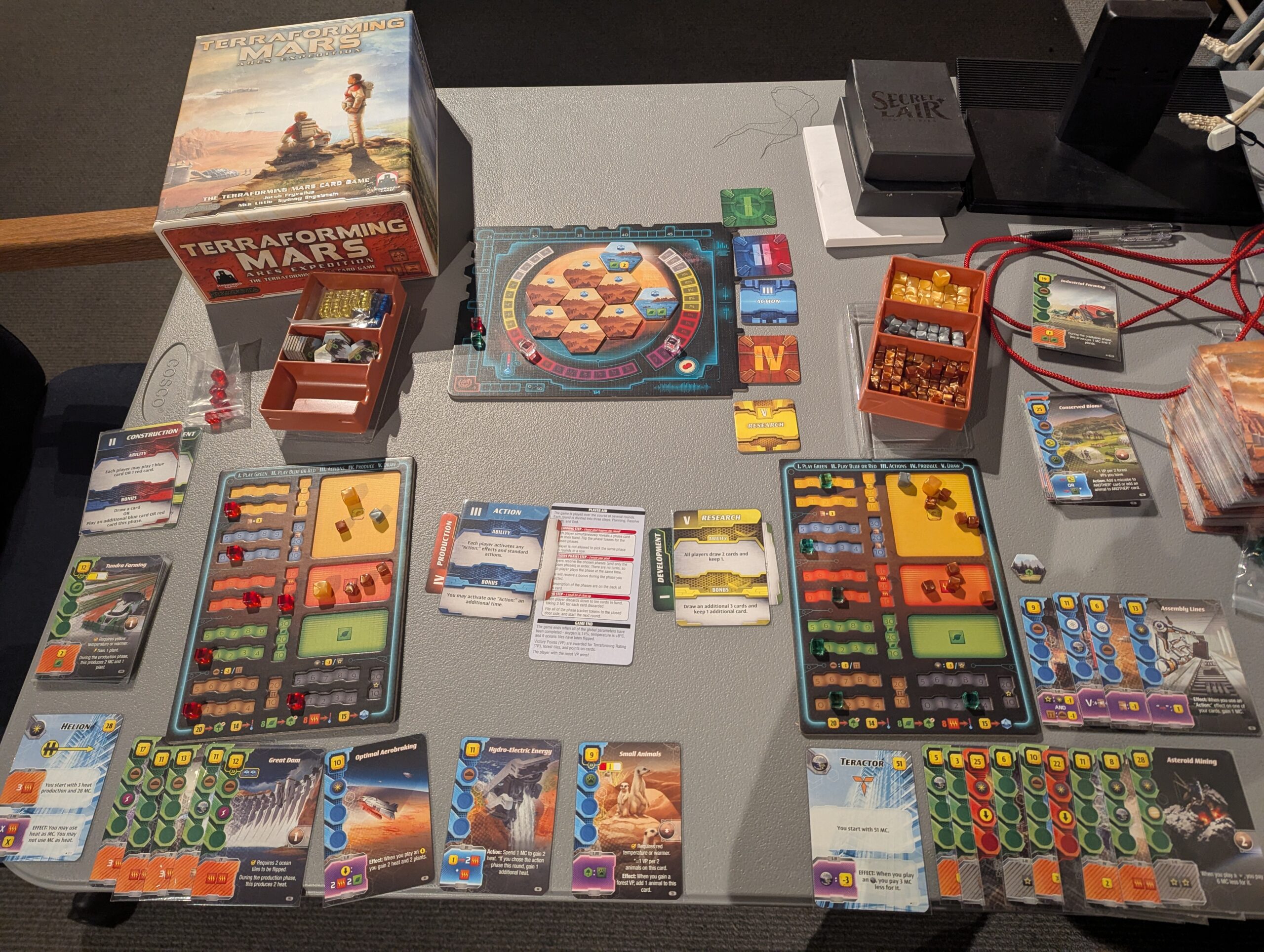 Longtime followers of this blog and my online ramblings will know that I am a hardcore (if occasionally conflicted) fan of the Terraforming Mars board game and its many many expansions. When I learned that they had put out a streamlined version, I was interested but also felt like I couldn’t justify paying for a brand new version of the game that couldn’t make use of the Too Many Expansions I had invested in. (quick sidenote, if you’re only going to get one thing to improve the game, get these custom player boards) Luckily, my friendly local game store had a copy for patrons to peruse so I popped it out and did just that so I could bring my findings to you all.